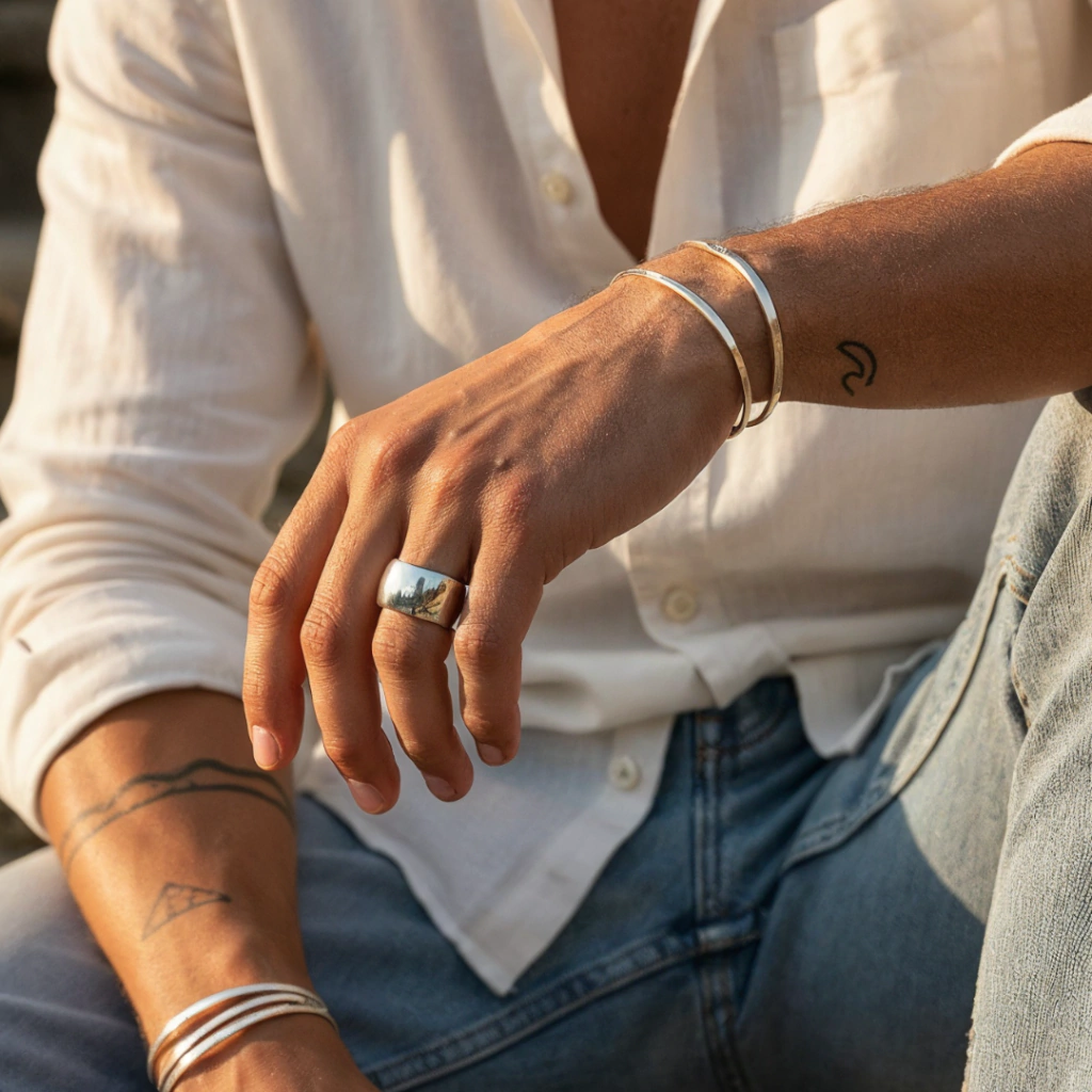 Lux es la forma más pura de expresión: un anillo de Plata 925 maciza, pulido a espejo para reflejar todo lo que lo rodea. Sin texturas, sin distracciones. Su estética limpia habla de seguridad interior, de quienes brillan sin hacer ruido.